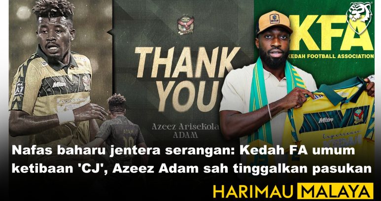 Nafas baharu jentera serangan: Kedah FA umum ketibaan 'CJ', Azeez Adam sah tinggalkan pasukan