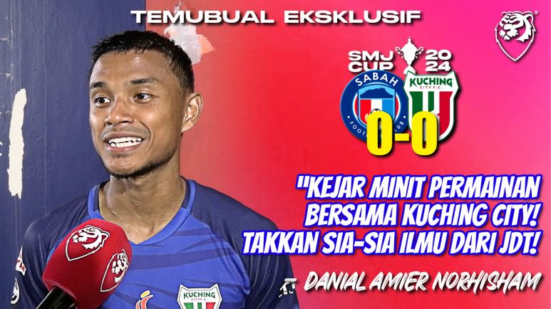 Temubual eksklusif bersama pemain Kuching City FC, Danial Amier selepas tamat perlawanan terakhir peringkat kumpulan SMJ Cup 2024 antara Sabah FC dan Kuching City FC. Keputusan perlawanan seri dengan jaringan 0-0.