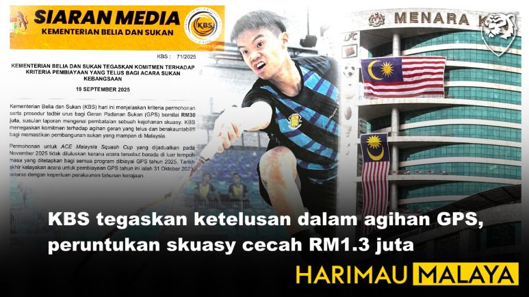 Kementerian Belia dan Sukan (KBS) menegaskan komitmennya terhadap prinsip ketelusan dan akauntabiliti dalam agihan Geran Padanan Sukan (GPS) bernilai RM30 juta, susulan isu pembatalan kejohanan skuasy yang tidak diluluskan untuk pembiayaan.