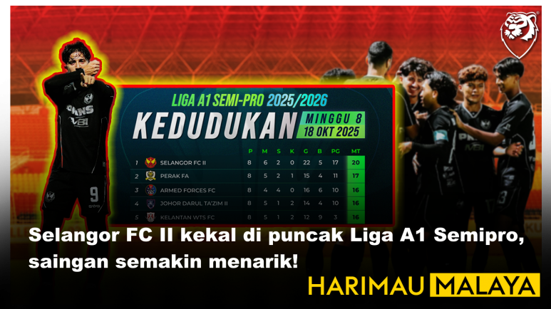 Saingan Liga A1 Semi-Pro musim 2025/2026 semakin sengit apabila Selangor FC II terus mengukuhkan cengkaman di tangga teratas carta selepas lapan perlawanan dengan kelebihan tiga mata.