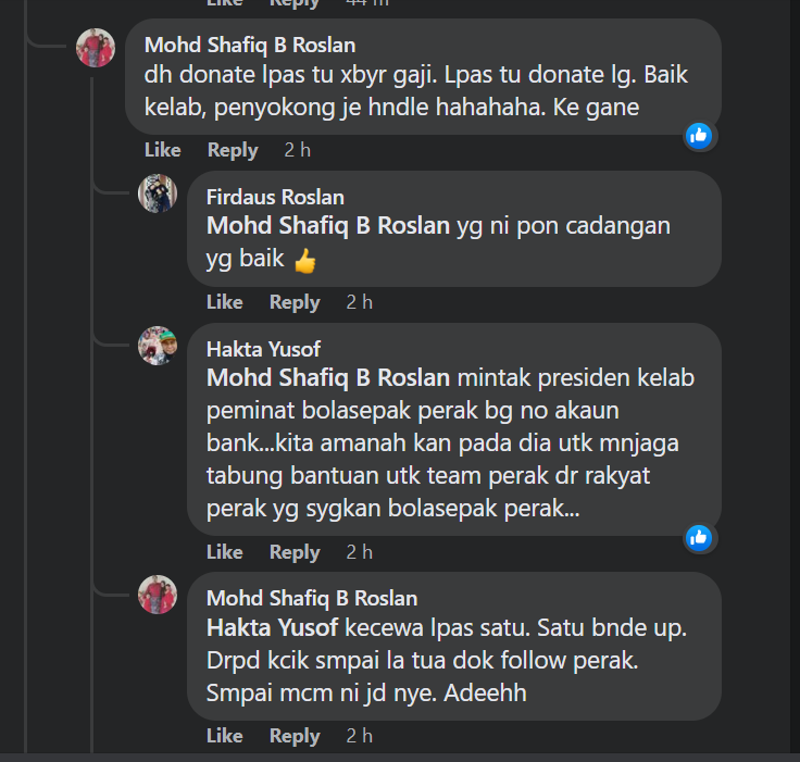 Pihak atasan sibuk rebut kuasa, peminat pula sibuk usahakan bantuan kepada pemain Perak
