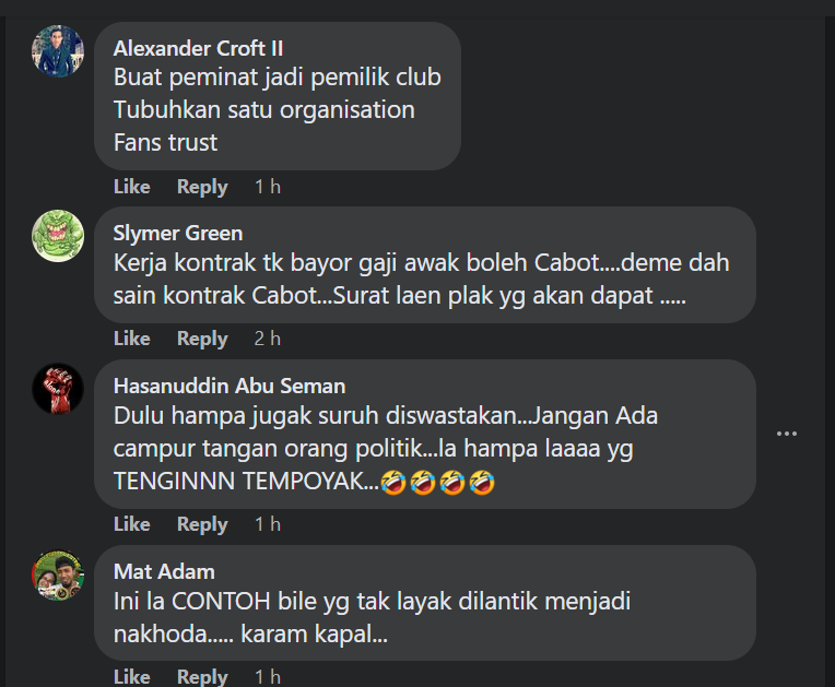 tulisnya di ruangan komen Facebook Seladang Fan Club.